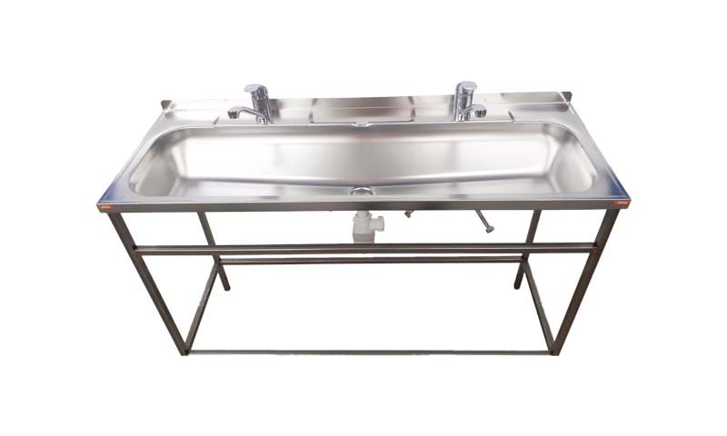 Siirrettävä käsienpesuallas kahdella hanalla.